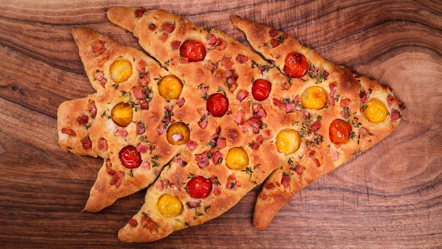 This is a great last-minute option for a festive bake. It is extremely simple, requires almost no preparation, and you don’t have to look after it either because it ferments in the fridge while you get on with your day. The result is a delicious and arguably beautiful bread.
