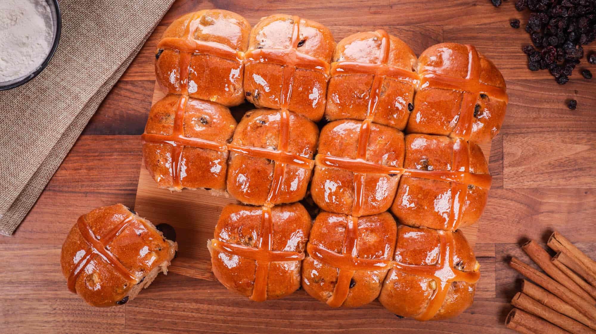 - Make the sugar syrup as soon as the buns come out the oven. Brush them all over. Use all the syrup.
